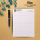 Restez organisé et professionnel avec ce Bloc-notes personnalisé 5 Carrés par pouce, conçu avec une grille bleue claire et propre, parfait pour les croquis, les calculs et la planification détaillée. Que vous travailliez dans l’ingénierie, la conception, la recherche en laboratoire ou dans des projets de soudage, ce tapis est conçu pour la précision. Chaque feuille vous permet de customiser le haut avec votre logo d'entreprise et vos coordonnées, ce qui en fait un outil fonctionnel et une pièce promotionnelle intelligente. Les lignes de grille sont configurées en 5 carrés par pouce, mais de légères variations peuvent survenir en raison du processus d'impression. Légère et polyvalente, cette tablette est idéale pour les bureaux, les salles de classe ou les sites d'emploi où l'exactitude et l'image de marque comptent. Vous recherchez d'autres blocs-notes personnalisables et des papeteries professionnelles ? Découvrez notre collection complète !