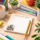 Ajoutez une touche littéraire ludique à votre bureau avec ce charmant bloc-notes pêche présentant un ver à livres coloré lisant au sommet d'une pile de livres, entouré de fleurs joyeuses. Le design vibrant et fantaisiste est parfait pour les enseignants, les étudiants ou quiconque aime les livres et un peu de plaisir dans leur papeterie.