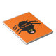 Ce formidable bloc-notes est doté d'une araignée noire éffrayante avec huit pattes poilues, des yeux jaunes avec de grands élèves noirs et sa bouche ouverte montrant ses crocs. Il y a un texte orange qui dit "Happy Halloween" et un arrière - plan orange correspondant.