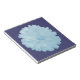 Ce formidable bloc-notes comporte une photo d'une fleur de marigold qui a été manipulée pour en faire une couleur bleu pâle glacé. La fleur est assise sur un arrière - plan bleu foncé.