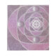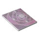 Un design en vitrail de spirales argentées et de tons de prune, sur un fond répétitif de fractales en spirale. Les spirales argentées convergent en un rose argenté, avec des pierres rondes pour accents.