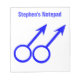 Ce bloc-notes incroyable est conçu pour les hommes gays. Il comporte deux symboles masculins bleus debout côte à côte. Le fond est blanc et il y a du texte bleu personnalisable en haut permettant de personnaliser ce bloc-notes.
