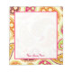Un bloc-notes avec un arrière - plan de cachemire rose, orange, jaune, bordeaux et vert. Personnalisez avec votre nom en rose.