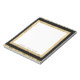 Doté d'un cadre double en cristal doré avec insert en feuille d'or, contre un arrière - plan noir, et d'une bordure en or cristal sur le dessus et le bas. Personnalisez le bloc-notes avec votre propre nom ou texte.