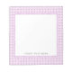 Avec un cadre en cristal rose contre un arrière - plan rose surmonté de points en cristal rose - si joli et féminin ! Personnalisez le bloc-notes avec votre propre nom ou texte.