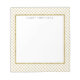 Dispose d'un cadre bordé d'or, contre un arrière - plan en treillis de parties scintillant d'or. Personnalisez le bloc-notes avec votre propre nom ou texte.