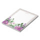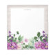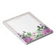 Illustration florale en gros plan au bas de la page, bordée d'une bordure en bois clair. Un bloc-notes fleuri à l'aspect artistique, avec une fragrance de fleurs violettes et une bordure en feuilles vertes, qui ferait un joli cadeau féminin pour les jardiniers. Le bloc-notes comprend un modèle texte où vous pouvez ajouter votre nom ou laisser comme notes.