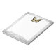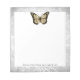 Ajoutez des notes et des rappels avec un Bloc-notes Brilliant Gold personnalisé. Le design du Bloc-notes comprend un papillon brillant orné d'une vigne de feuillage contre un arrière - plan gris grunge et de l'espace à personnaliser avec votre nom. Autres articles de papeterie correspondants disponibles avec cette conception aussi. Si vous avez besoin d'aide pour la personnalisation, veuillez me contacter directement.