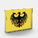 Ce dessin d'aigle allemand de Richard H. Fay fait la part belle au moderne et au médiéval. Il s'inspire à la fois de l'aigle fédéral moderne et de divers aigles héraldiques médiévaux.