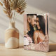 Un beau cadeau photo pour les jeunes mariés. Superbe aquarelle bohème moderne, couleur tropicale, mariage photo de fleurs botaniques dessinées à la main et verdure tropicale. Des formes géométriques modernes associées à une belle palette de couleurs boho moderne créent cette élégante photo-keepsaké mariage sophistiquée. "Love" script de photo overplay, personnaliser avec la date du mariage et la photo du couple dans une arche moderne. L'arrière - plan présente notre magnifique motif botanique dessiné à la main avec une couche de couleur rousse. Toutes les illustrations sont dessinées à la main par Moodthology Papery.