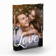 Un mariage moderne pour les jeunes mariés, la Saint Valentin, les grands-parents, présentant votre photo de famille préférée avec une calligraphie script moderne lire LOVE sur vos noms personnalisés et dater sur un dégradé sombre pour faire ressortir la typographie.