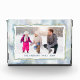 Cette boîte photo comprend cadre photo horizontal sur un arrière - plan d'aquarelle douce en bleu, vert, violet et or. Le cadre photo est bordé par une bordure dessinée à la main ondulée. Le texte personnalisé vous permet d'ajouter un nom et une année pour un cadeau parfait de Noël de conservation.