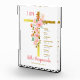 Ce bloc photo baptême est parfait pour une fille de tout âge. Ce modèle baptisé présente de jolies fleurs roses et rouges sur un crucifix. Il y a sept mots encourageants associés à leurs versets bibliques. Tout le texte peut être personnalisé. Vous pouvez remplacer le nom de la fille, les mots et les versets associés, et spécifier la date de baptême. Ce bloc photo sera très bien dans la chambre d'une petite fille, la chambre d'enfants, ou même une chambre d'adolescentes. Il aura l'air très bien sur une table ou une étagère. Il lui rappellera certainement ce jour spécial où elle a été baptisée. Il fait un grand cadeau pour une fille, une fillette, une nièce, une petite-fille, une petite amie, un bestie, une soeur ou une soeur du christ.