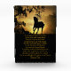 Il s'agit d'un hommage commémoratif spécial au cheval bien-aimé de nos vies. Forever Libérez un poème original, de type spirituel de Stéphanie Laird. L'image d'un cheval fort et libre avec la silhouette du lever du soleil sur le cheval et les chênes.