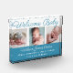 Bienvenue bébé. Un classique faire-part de naissance photo garçon en bleu cérusé avec une belle typographie cursive au-dessus de votre collage photo jeune né doux. Customisez le dos avec votre photo préférée de votre nouveau-né pour obtenir une belle carte.