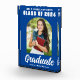 Ce bloc photo moderne bleu et blanc personnalisé pour seniors comprend votre nom de lycée ou de collège pour la classe de 2025. Customisez avec votre nom sous l'écriture manuscrite chic et audacieuse et l'arche branchée pour un décor de fête de remise de diplômes personnalisé.
