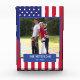Ce bloc-photo patriotique moderne est un cadeau unique à donner à la famille ou à vos propres gardiens. Le design présente votre photo au centre encadrée par le drapeau américain en rouge, blanc et bleu étoiles et rayures. Ci-dessous, la typographie blanche sur le bleu est votre nom et année établie pour personnaliser. Conçu par l'artiste ©Susan Coffey.