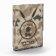 Un style militaire brun "sobre" représentant un bouclier de Maccabee et deux lances sur un arrière - plan de camo dans le désert. Le bouclier est orné d'un lion et d'un texte lisant "Yisrael" (Israël) dans l'alphabet paléo-hébreu. Le texte hébreu moderne lisant "Maccabee" apparaît également. Les Maccabées étaient des rebelles juifs qui ont libéré la Judée du joug de l'Empire seleucide. Chanukkah n'est pas seulement un festival de mi-hiver avec des bougies et des friandises, il célèbre une victoire militaire, et sécurise la liberté religieuse, sur l'empire Seleucid. En outre, la révolte était une guerre civile impliquant les Juifs qui étaient loyaux à Dieu et ceux qui avaient adopté l'hellénisme des Seleucides.
