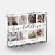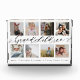 Envoyez un beau cadeau personnalisé à vos grands-parents qu'ils chériront pour toujours. Plaque de collage photo pour petits-enfants personnalisée pour montrer vos propres photos de famille et souvenirs spéciaux. Notre design comprend un design simple 8 photo collage grille avec "Grandchildren" conçu dans un style de script noir écrit à la main. Chaque photo est encadrée d'une simple bordure décalée de couleur or. Customisez avec les noms des petits-enfants.