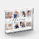 Envoyez un beau cadeau personnalisé à votre grand-mère (Nonna) qu'elle chérira pour toujours. Un bloc photo de collage photo pour petits-enfants personnalisés pour afficher vos propres photos et souvenirs de famille. Notre design comprend un design simple 8 photo collage grille avec "Nonna" conçu dans un style de script noir manuscrit. Chaque photo est encadrée d'une simple bordure décalée de couleur or. Customisez avec les noms des petits-enfants.