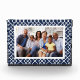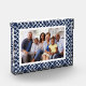 Affichez une photo de famille préférée dans un style élégant avec notre bloc acrylique préppy chic autonome. Le design comprend votre photo horizontale ou verticale encadrée par un motif en treillis de bambou en bleu marine et blanc classique.