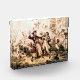 Le spray salé a piqué les yeux d'Edward Teach alors que l'aube saignait le pourpre sur la côte de la Caroline. Il est parti pour la redoutable Revenge de la Reine Anne, sa fierté et sa possession. Aujourd'hui, Blackbeard, comme on le connaissait dans les Caraïbes, captiva la modeste aventure, une veste qui fuit par rapport à son ancienne gloire. Le mécontentement couvait au sein de son équipage, un groupe déchiqueté maintenu loyal par la peur et la diminution des rations de rhum. — Soudain, le regard s'est mis à rugir, brisant le silence tendu. Deux navires, plus petits mais élégants, sont sortis de la brume, en les écrasant comme des requins affamés. Barbe noire maudite, reconnaissant les couleurs de la Marine royale. Le gouverneur Spotswood de Virginie avait finalement envoyé ses hounds. — La panique s'est répandue sur le visage de certains de ses hommes, mais Blackbeard a soulevé un défi, sa voix en plein essor coupant à travers l'air salé. Il s'est attaché sur un bandolier de pistolets, a allumé des allumettes lentes pour ses fusils à la signature tissés dans sa barbe, et a brandissé ses cutlass, une mâchoire dentelée d'acier. — Le navire principal, le Ranger, commandé par le jeune lieutenant Maynard, a déclenché un torrent de canons. Les colombages de l'Aventure gémissaient en signe de protestation. Barbe-Noire souffla les ordres, son équipage se démène pour retourner le feu. La fumée remplissait l'air, acride et étouffant. — Maynard, un adversaire rusé, dirigea le Ranger à côté de l'aventure, et s'empara des hameçons qui mordaient en bois pourri. La barbe noire, un tourbillon de fureur, a mené la charge sur le pont ennemi. Des pistolets aboyés, des culottes claquées dans un ballet mortel. Maynard, son visage gravé avec une détermination sinistre, parcourt les coups de Barbe Noire. L'acier chantait contre l'acier, étincelle le vol. — La bataille a fait rage à travers les ponts, une lutte désespérée pour la survie. Le sang tranchait les planches, et les gémissements des blessés se mêlaient au rugissement des canons. La Barbe Noire, un démon libéré, combattit la fureur d'une bête acculée. Il prit une coupe au bras, puis une autre à sa jambe, mais il se leva en arrière, sa barbe noire éclate de défi. — Mais les chiffres l'ont dit. Les hommes de Maynard, frais et disciplinés, repoussèrent lentement les pirates fatigués. Un par un, l'équipage de Blackbeard est tombé. Un coup de chance de Maynard a brouté la joue de Barbe Noire, l'aveuglant dans un oeil. Enragé, il lança un flou sur le jeune officier. Maynard s'enfuit, et la lame de Barbe Noire ne trouva que de l'air. L'élan a poussé Blackbeard en avant, hors équilibre. — En ce moment, Maynard vit sa chance. Avec une poussée d'adrénaline, il a dévoré, sa propre cutlass trouvant sa marque. La barbe noire grondait dans la douleur, une blessure béante à travers la poitrine. Il est rentré, son feu s'est éteint. Avant qu'il ne tombe, une grêle de mousquet a éclaté des hommes de Maynard. La barbe noire s'effondra, un chêne géant abattu à dernier. — Les autres pirates, leur chef mort et l'espoir brisé, se sont rendus. Alors que le soleil montait, projetant sa lumière dorée sur une scène de carnage, une nouvelle légende est née. La Barbe Noire, la terreur des mers, n'était plus. Sa capture, un témoignage sanglant de la poursuite acharnée de la justice, a fait écho à travers les vagues. — Maynard, son visage sombre avec victoire, a étudié le carnage. Son regard tomba sur la forme tombée de Barbe Noire. Avec un froid clin d'oeil dans les yeux, il ordonna que la tête du capitaine pirate soit coupée. La tâche horrible a été accomplie, la tête tenue en haut, un trophée sinistre et un avertissement sévère. — Le corps sans tête de Barbe Noire a été déversé sans cérémonie par-dessus bord, avalé par la mer tourmentée. La légende veut cependant que quelque chose d'extraordinaire se soit produit. Alors que le corps percutait l'eau, certains membres de l'équipage de Blackbeard, ceux qui croyaient à la magie noire murmuraient parmi les pirates, juraient qu'ils voyaient son cadavre sans tête se tortiller. Puis, avec une poussée d'énergie non naturelle, il rose droit. Pendant un moment, il resta là, un défi même dans la mort, avant de replonger sous les vagues. Ils ont revendiqué son corps, nourri par un pacte impie ou une pure volonté, nagé trois fois autour du navire ; la Légion arcobantienne, un terme utilisé par certains pirates pour décrire les neuf vies légendaires d'hommes particulièrement méchants, soi-disant accordée par le diable lui-même. — La tête de Barbe Noire, cependant, s'est embarquée dans un autre voyage. Il a été exposé sur l'esprit du navire de Maynard, un visage horrible à voir pour tous. Il a servi de preuve de la victoire du lieutenant et de message glaçant à tous ceux qui osaient suivre le chemin de Barbe Noire. — Les histoires tourbillonnaient autour de la tête de Barbe Noire après qu'elle ait atteint la Virginie. Certains prétendaient qu'il était exposé sur un poteau à l'entrée de la rivière Hampton, un rappel horrible pour tous ceux qui ont navigué en arrière. D'autres chuchotèrent d'un destin plus sombre, que le crâne était façonné en un bol de punch en argent macabre, portant à jamais le sourire froid du pirate décédé. — Peint en 1920, la capture de la Barbe Noire pirate en 1718, par Jean Leon Gerome Ferris. Cette oeuvre est du domaine public aux États-Unis tel que publié (ou enregistré dans le US Copyright Office ) avant le 1er janvier 1929.