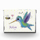 Ce joli design présente un colibri vert et violet heureux avec un ami d'abeilles. Le tout dans un joyeux style d'illustration de dessin animé !