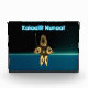 Image fractale brune suggérant un chasseur inuit très stylisé, portant des vêtements traditionnels en fourrure, tenant un harpon avec une tête d'ivoire. L'image est superposée à un arrière - plan représentant l'hiver polaire sombre. Le texte "Kalallit Nunaat", le nom de l'île de Kalallisut, le dialecte principal, apparaît en bleu et blanc éclatant.