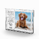 Célébrez votre meilleur ami et chérissez ces précieux souvenirs avec un souvenir unique personnalisé et préservez le saké dans un design moderne en marbre blanc. Ce bloc photo de la mémoire de chien est le cadeau idéal pour vous, famille ou amis à honorer ceux qui sont aimés. Nous espérons que la plaque commémorative de votre animal de compagnie vous apportera la joie, la paix, et des souvenirs heureux. Citation : "Quand demain commencera sans moi, ne pensez pas que nous sommes éloignés, pendant tout le temps que vous pensez à moi, je suis ici dans votre coeur." DROIT D'AUTEUR © 2020 Judy Burrows, Black Dog Art - Tous droits réservés. Bloc photo pour chien de garde commémoratif pour animal