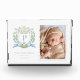 Ce bloc photo faire-part pour bébé doux est une façon parfaite d'annoncer l'arrivée de votre nouveau bébé. Le design comprend une crête monogramme avec un ruban bleu et un mignon chiot. Présentez votre bébé avec les détails de la journée spéciale de votre nouveau-né et une photo de nouveau-né.
