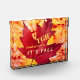 TGIF ! Célébrez votre amour pour la spectaculaire et spectaculaire saison d'automne! Feuilles colorés, thé chai, beignets de cidre de pomme, matins croustillants, citrouilles, épices et tout ce qui est bien - il doit être automne y'all! Il est facile d'obtenir dans la vibe d'automne avec ce bloc photo acrylique audacieux et étonnamment beau d'automne. La conception comporte une grande feuille rouge/rouille profonde sur un arrière - plan de couleur rouge et jaune cravate. Le texte dit : "Merci au TGIF d'être tombé." Le bloc photo est parfait pour toutes vos célébrations sur le thème des chutes et vos rassemblements familiaux. Parcourez notre collection complète de cartes de voeux sur le thème des chutes, de décors, de vêtements et d'articles cadeaux uniques.