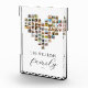 Créez votre propre collier photo de famille personnalisé bloc acrylique avec 63 de vos photos préférées dans un design de grille photo en forme de coeur. Personnalisez avec nom de famille dans la typographie moderne pour un cadeau photo personnalisé ou décor maison.