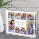 Bloc photo Acrylique "Grand-mère" personnalisé. Ce bloc photo acrylique simple et élégant est une belle façon de présenter des souvenirs chéris. Le design dispose d'espace pour huit photos, disposées dans une bordure autour des bords, tout en gardant l'accent sur le texte significatif au centre. Au centre, "Grandma" s'affiche dans une police serif classique, avec une deuxième ligne en script manuscrit pour ajouter les noms des petits-enfants ou un message spécial. L'arrière - plan blanche et propre lui confère une atmosphère intemporelle et raffinée. Entièrement personnalisable, vous pouvez ajuster le texte, les polices, les couleurs et les photos pour créer un cadeau personnel et significatif, parfait pour la fête des mères, les anniversaires, les fêtes ou toute occasion spéciale. Ce bloc photo en acrylique décoratif sert de garde intemporelle pour célébrer Grand-mère.