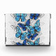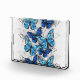 Vertical composition of réalistes, blue and white morpho butterflies on gray textured background. Morphine bleu.