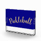 Ce design amusant présente un grand texte centré "Pickleball" écrit en script festif. L'arrière - plan est bleu royal vif, et la bande de fond est blanche brillante.