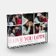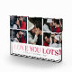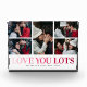 Créez votre propre bloc photo de famille avec un collage photo de 5, les mots "love you lots" dans une police de dégradé rose/rouge, vos noms, et l'année.