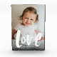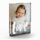 Avec un traitement de type moderne et ludique, ce bloc photo vertical est une façon adorable de partager l'amour. L'amour du texte blanc est dans un style désespéré écrit à la main avec des taches blanches autour. Il y a également de la place pour le texte personnalisable - un nom, une année ou tout ce que vous voulez ajouter. Faites un grand cadeau de Saint Valentin, un cadeau de Mère ou de Fête des pères ou juste un souvenir pour une belle photo. Les grands-parents adoreront aussi !