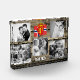 Photo Block : Patriotic Norway family photo block avec vingate rustique style bois arrière - plan avec drapeau norvégien, Emblem & Norvège design set in glass block - love my country, travel, holiday photos, set mariage, grands-parents cadeaux, patriotes / fan de sport.