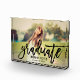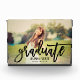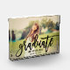 Célébrez votre diplômé en style en présentant leur photo préférée avec cette photo en noir brush en écriture "Graduate" superposition de la plaque photo bloc design. Personnalisez le texte noir avec le nom de la grade et l'année de classe. Fait un beau gardien pour la maison de votre famille.
