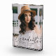 Célébrez la réussite de votre diplômé avec un saké photo de diplôme personnalisé. Le bloc photo présente la photo verticale du diplômé avec le "diplôme" affiché dans un script noir tendance. Personnalisez le bloc photo de graduation moderne en ajoutant le nom, l'école et l'année de graduation du diplômé.