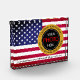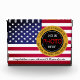 Glass Photo Block : American Flag & United States of America (USA) photo personnalisée, badge de nom pour votre bureau, table, armoire trophée - amour mon pays, retraite, évaluation, patriotes / fans de sports