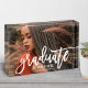 Un bloc photo de fin d'études élégant présentant un portrait complet de finissant avec « Graduate » en écriture blanche fluide brossée et le nom et l'année de promotion du finissant dans une typographie coordonnée. La superposition d'écriture blanche crée un beau contraste sur n'importe quelle photo, ce qui en fait un souvenir polyvalent. Personnalisez avec un portrait préféré et des détails pour un cadeau de fin d'études significatif.