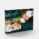 Elégant bloc photo de vacances avec "Joyeux" dans un script moderne de calligraphie blanche sur un arrière - plan turquoise peint. Personnalisez le bloc photo de Noël en ajoutant deux de vos photos préférées, salutation, nom, et l'année.