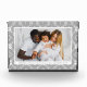 Affichez vos souvenirs de vacances avec ce bloc photo de Noël Elegant Grey Nordic Snowflake Motif. Votre photo horizontale est encadrée en blanc et placée contre un arrière - plan de flocon nordique gris et blanc. Personnalisez avec votre salutation festive et votre nom de famille en lettres grises assorties. Un souvenir saisonnier intemporel qui fait un merveilleux cadeau de vacances pour les amis et la famille.