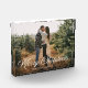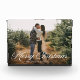 Photo de vacances moderne en noir avec votre photo horizontale avec "Joyeux Noël" affichée dans un écrin de calligraphie blanc en gras superposé. Personnalisez le devant du bloc photo de Noël avec votre nom de famille et l'année.