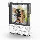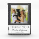 Élégant Script Gris Moderne Merci Mariage Favoriser Bloc Photo. Un bloc photo de faveur mariage avec une photo de mariage, les noms de mariée et de mariée et une date de mariage. L'arrière - plan est gris foncé et blanc. Un bloc photo de remerciement élégant et élégant - parfait comme un cadeau pour vos invités. Ajoutez votre photo de mariage préférée dans le modèle et faites un cadeau de faveur personnel.