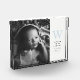 Une introduction simple pour votre nouveau petit avec une photo unique, une grande initiale bleu bébé et une chambre pour les statistiques. Vous pouvez modifier les couleurs du texte en cliquant sur le bouton "personnaliser". Ce design simple et chic fait un parfait souvenir pour les photos de nouveau-nés.