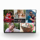 Collage photo moderne avec 5 photos et monogramme tendance avec votre nom de famille en blanc et initial en couleur corail. Pour modifier ce modèle, cliquez sur customiser plus loin. Veuillez me contacter si vous avez besoin d'aide pour ce design.
