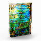Vitrail Art nouveau d'époque d'étoiles de mer par tiffany. Dans les couleurs bleu, turquoise, or et marron. Un design vintage élégant.