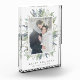 Display your favorite photo with our Elegant Winter Foliage holiday acrylic photo block ! The custom photo block objets your photo framed by watercolor leaves and foliage in shades of green and navy blue with Happy Holidays displayed below . Personalize the front by changing the greeting and adding your family's name.